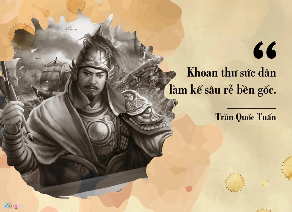 Ngoài tài năng về quân sự, Trần Hưng Đạo còn để lại cho hậu thế những tư tưởng lớn. Trong đó, nổi bật là lấy dân làm gốc như lời khuyên của ông dành cho vua Trần Anh Tông trước khi qua đời: “Khoan thư sức dân để làm kế sâu rễ bền gốc là thượng sách giữ nước”.